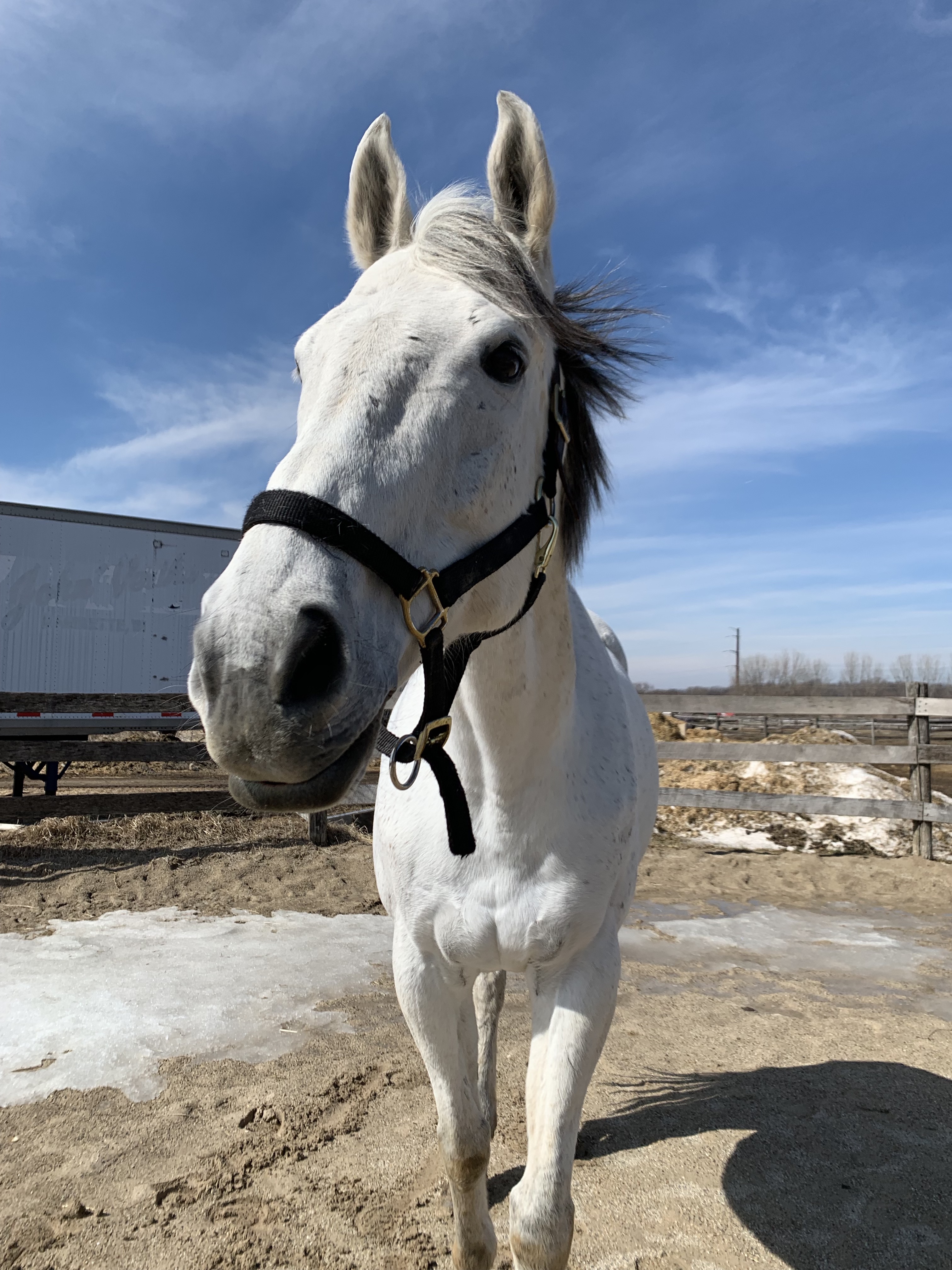 That blue backdrop against his brilliant (and fuzzy) winter coat. 🦄